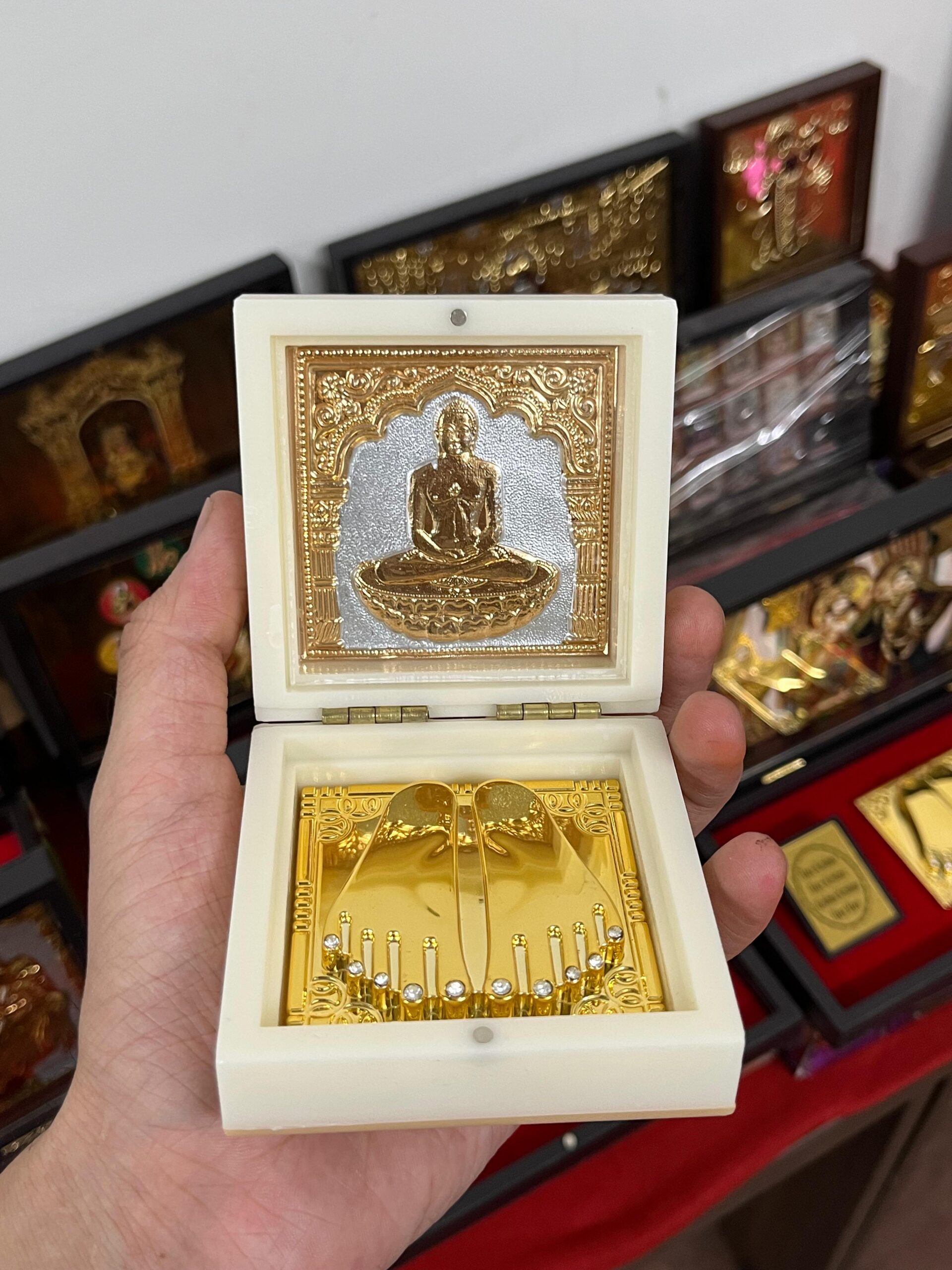 24K Gold Plated Mahavir Swami Charan Paduka Religious Frame 3×3 Inch – Navgraha.in