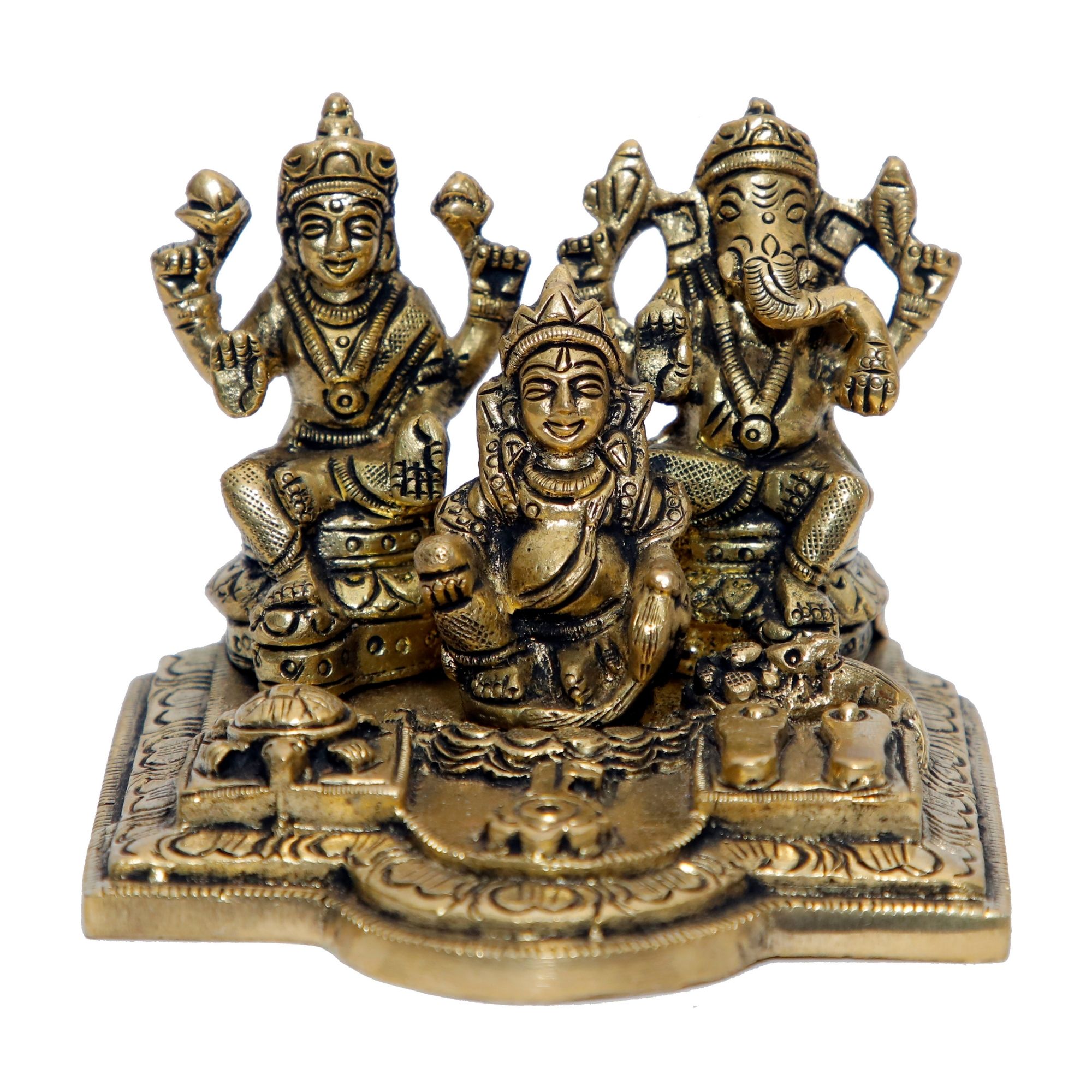 Laxmi-Ganesh-Kuber Dhan Yantra Brass Idol | Deity Idol Exclusive Collection