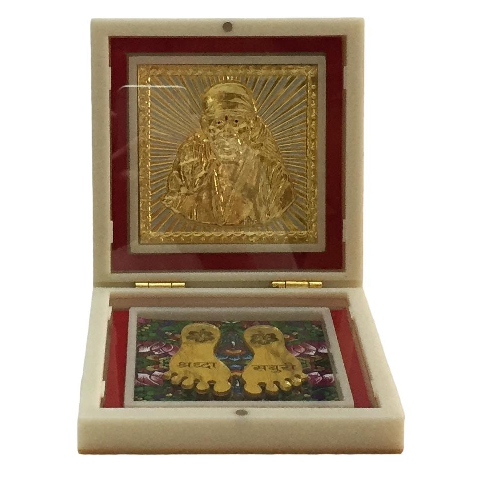 Sai Baba Gold Plated Charan Padhukas in White Box – Corporate Gift 4 x 4 inch | Divine Footprints for Blessings & Prosperity