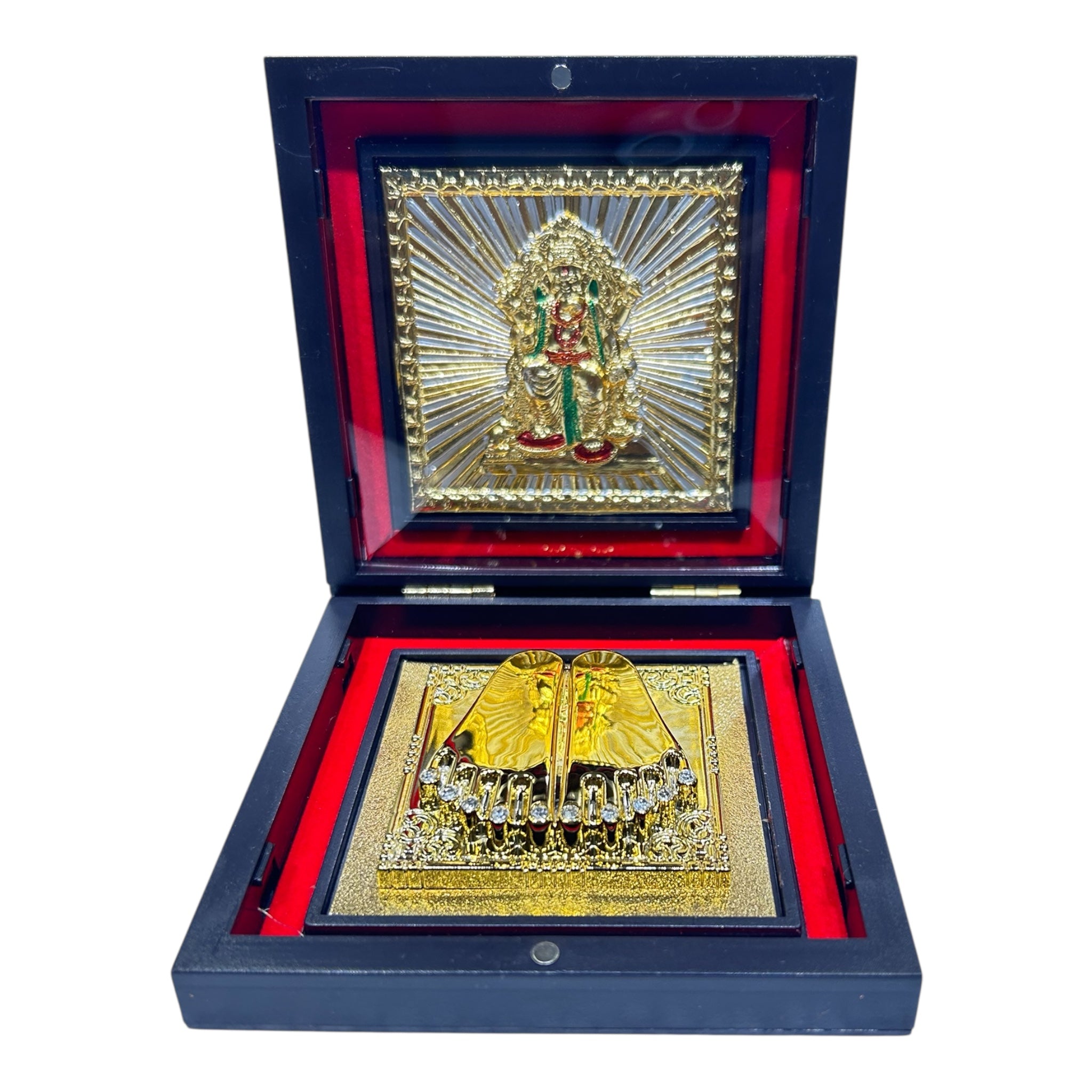 Sri Ganesh Ji Gold Plated Charan Box Corporate Gift 4 x 4 inch | Sacred Divine Footprints for Temple & Home
