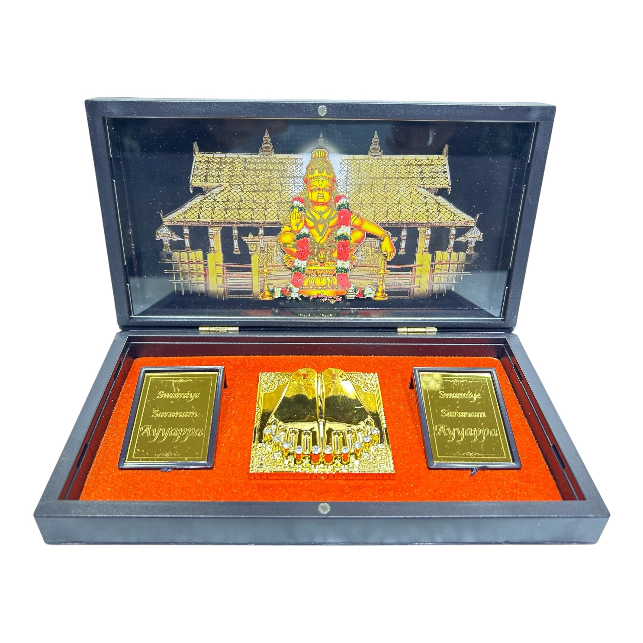 Swami Ayyappan Charan Padhuka Gold Plated Box Corporate Gift 8 x 4 inch | Lord Ayyappan for Dharma & Spiritual Protection